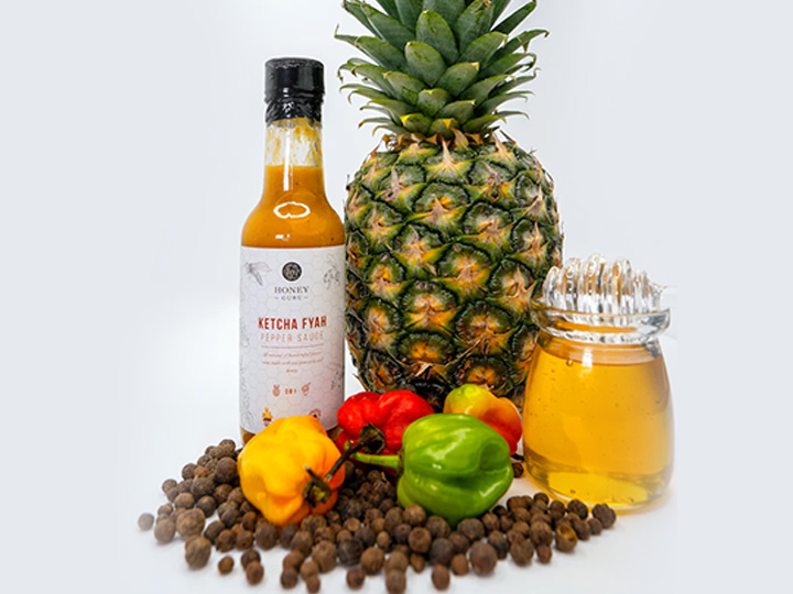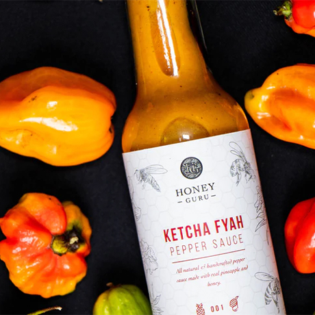 Handcrafted in small batches, Honey Guru captures the vibrant and tropical flavors of Pineapple mixed with Jamaican spices to create a refreshing hot sauce unlike any other, that will take your taste buds on a tour of the Islands. This sauce should be used sparingly, as a little can go a long way to enhance almost any savoury dish. Be BOLD and enjoy this sauce with your choice of soups, stews, and rice dishes, and so much more!